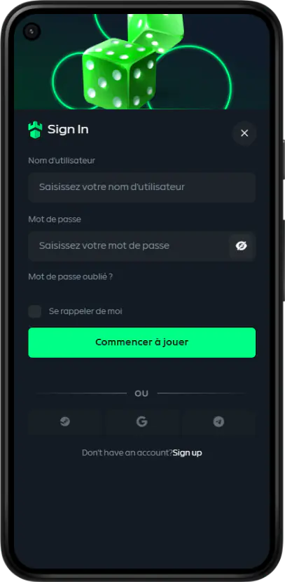 Pour profiter de nos différentes fonctionnalités, jeux de casino, loterie, bonus, tours gratuits sur l’application, vous devez faire une inscription complète. Pour y parvenir, vous devez avoir plus de 18 ans et disposer de certains documents (passeport, permis de conduire, etc.) pour la vérification de compte. Par la suite, vous obtiendrez vos identifiants qui vous permettront de vous connecter à n’importe quel moment.