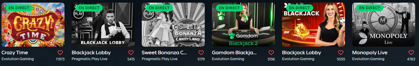 Avec plus de 5 000 types de jeux de casino en ligne, GamDom France dispose de l’une des meilleures ludothèques. Ces jeux sont subdivisés en plusieurs catégories dont les machines à sous, jeux de table, mini-jeux, live casino et mégaways. Chaque catégorie du casino GamDom dispose de ses propres caractéristiques, règles et thèmes. La qualité de nos jeux est due à notre partenariat que nous avons avec des éditeurs de renom (Pragmatic Play, Novomatic Play, Isoftbet, etc.) Il faut souligner que nous avons aussi nos propres jeux originaux que nous lançons nous-mêmes. Tous nos jeux sont compatibles avec les appareils Android et IOS. Lisez attentivement notre GamDom avis pour tout savoir sur notre ludothèque en 2026.